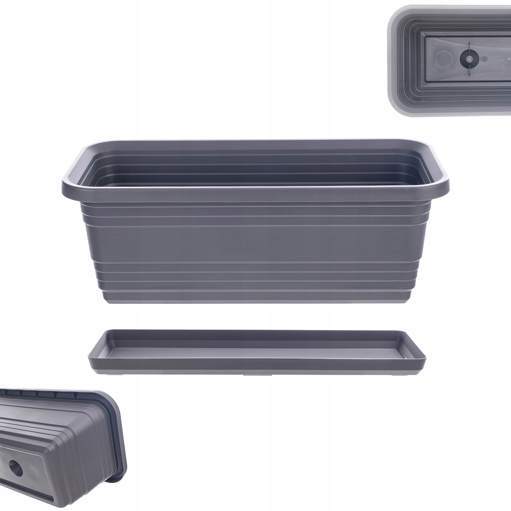 БАЛКОННЫЙ ЦВЕТОЧНЫЙ ГОРШОК КОРОБКА ЦВЕТОЧНЫЙ ГОРШОК 40см + ПОДСТАВКА АНТРАЦИТОВОГО цвета