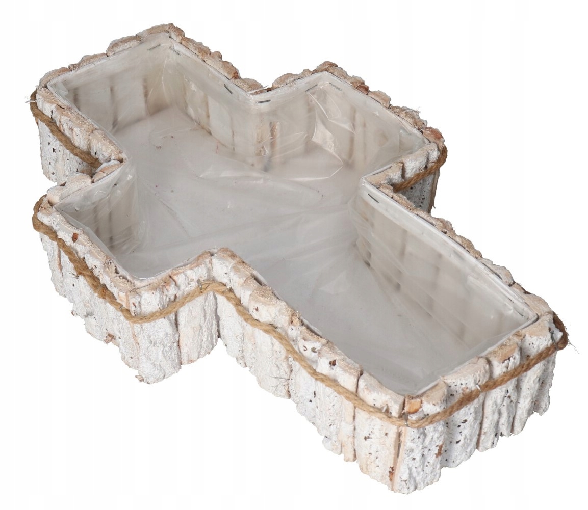ГОРЩИК ДЛЯ КВІТІВ, НАКРИТА ДЕРЕВ'ЯНОЇ КОРИ, ХРЕСТ ДЛЯ МОГИЛЬНОГО ПРИКРАШУВАННЯ