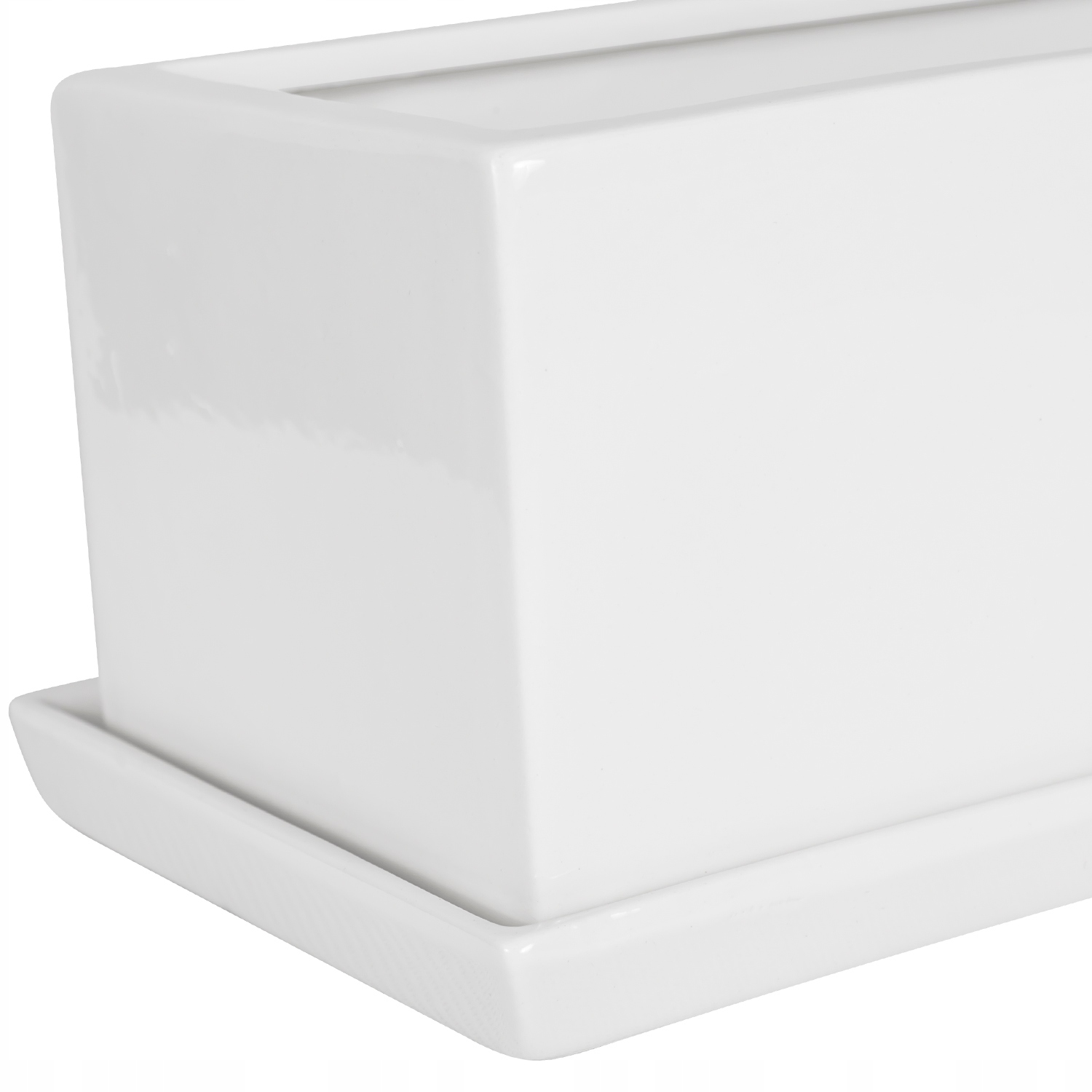 Наш цветочный горшок не только эстетичен, но и функционален. Его размеры составляют 30 см в длину, 15 см в ширину и 14 см в высоту, что делает его идеальным для трав, кактусов и небольших цветочных композиций. Изготовлен из высококачественной керамики, гарантирует долговечность. Глянцевый белый цвет придает ей современный характер, который обязательно привлечет внимание каждого, кто посетит вашу квартиру. Подарите себе немного зелени и стиля с помощью нашего уникального цветочного горшка!