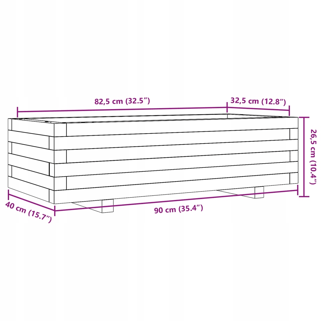 Горщик для квітів садовий, восково-коричневий, 90х40х26,5 см, сосна