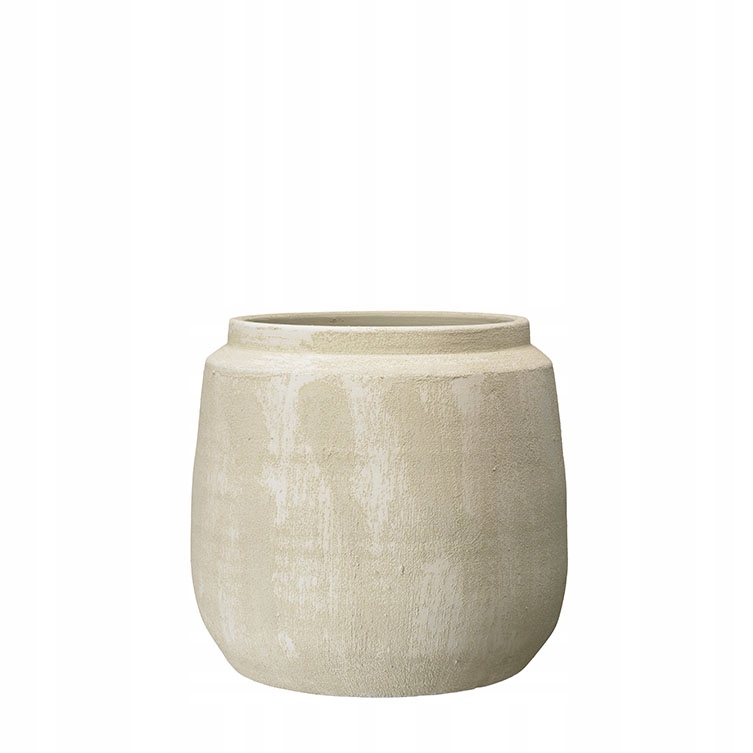 Высокий цветочный горшок из керамики в бежевых оттенках.