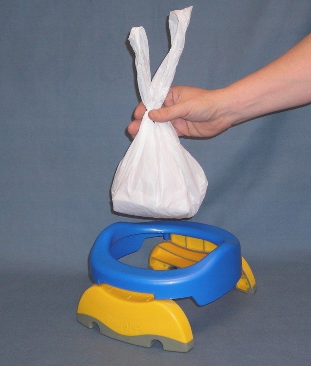 Горшок Potette Plus вы всегда можете взять с собой, когда выходите из дома. В такой ситуации необходимы одноразовые вкладыши, которые действуют аналогично одноразовым подгузникам. Они прекрасно впитывают жидкости и неприятные запахи, тем самым помогая поддерживать горшок в чистоте в полевых условиях.