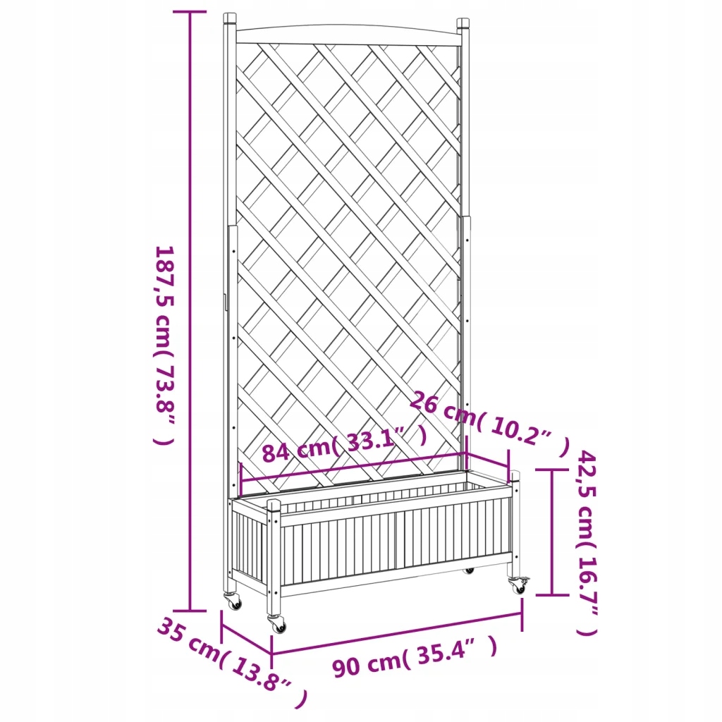 Этот деревянный горшок с содержанием и колесами является отличным выбором для разведения растений в вашем саду, на террасе и на пати. Он не высохнет и не искажает, что делает его надежным выбором. Кроме того, покое дно обеспечивает хорошую вентиляцию и дренаж. Он также введет ослепительное дополнение к вашему космосу. Это может быть помещено в угол внутреннего дворика, основанный на стене или заборе. Вставка не включена. 3,5 см