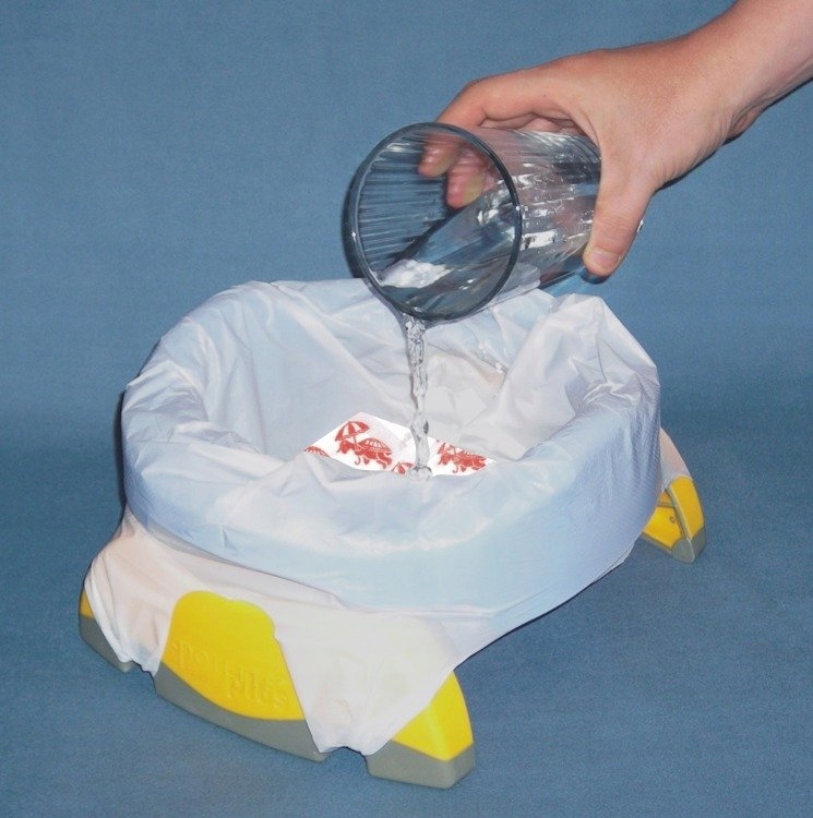 Горшок Potette Plus вы всегда можете взять с собой, когда выходите из дома. В такой ситуации необходимы одноразовые вкладыши, которые действуют аналогично одноразовым подгузникам. Они прекрасно впитывают жидкости и неприятные запахи, тем самым помогая поддерживать горшок в чистоте в полевых условиях.