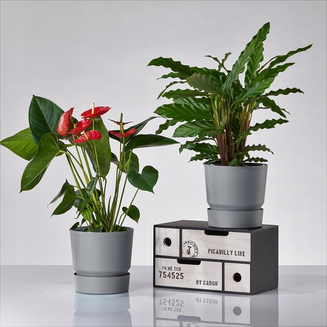 В наличии белый и серый цвета. в матовом варианте со структурой, напоминающей терраццо. Последние две фотографии лучше всего демонстрируют эту структуру, поэтому выбирайте цвет на их основе. Пожалуйста, совершайте обдуманную покупку и укажите в комментариях к покупке цвет (белый или серый) выбранного горшка, в противном случае мы вышлем цвет случайным образом.