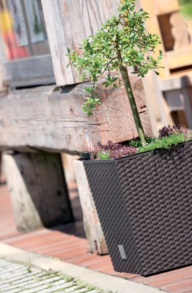 БОЛЬШОЙ САДОВЫЙ ГОРШОК ДЛЯ БАЛКОНА ТЕРРАСЫ 32 Л РОТАН + ЧЕРНАЯ НИЗКАЯ ВСТАВКА ROTO