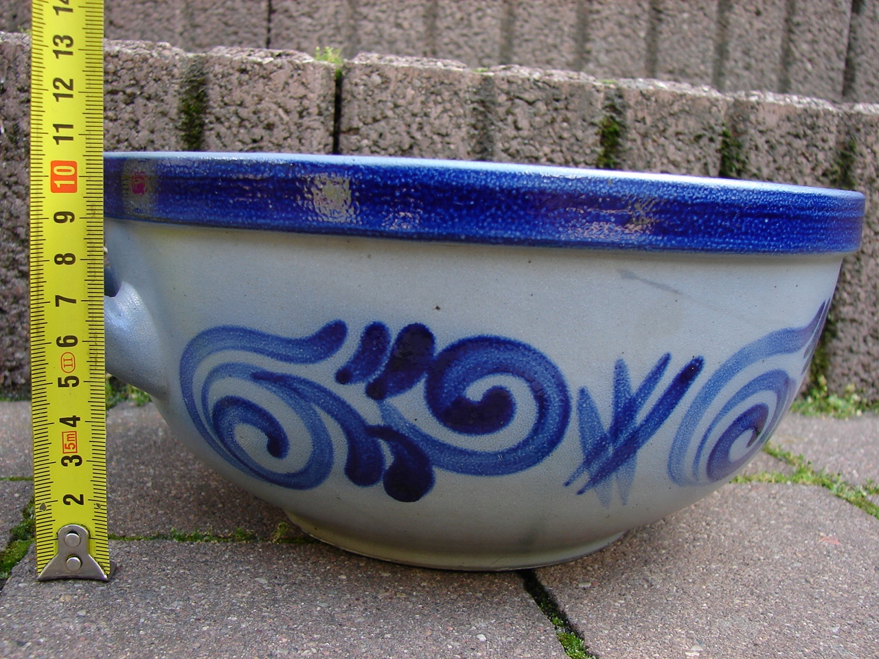 горшок, полностью изготовленный из керамора, украшенного окрашенным кобальтовым рисунком.