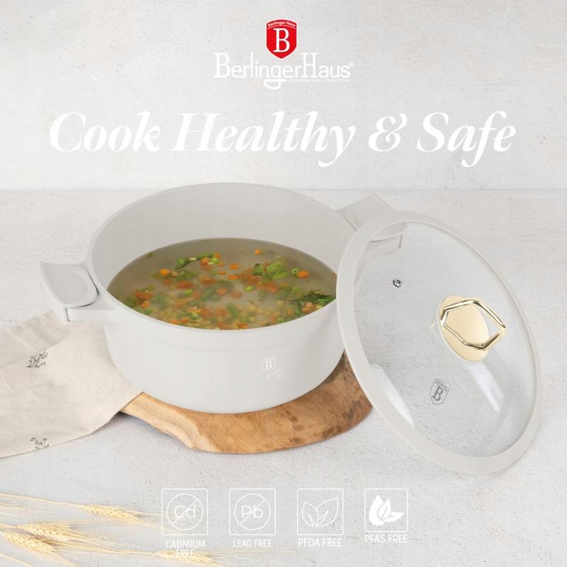 Элегантный горшок из коллекции Sahara Collection с титановой поверхностью является идеальным помощником для повседневной кухни. Благодаря вместимости 6,6 литра и диаметру 28 см, она подходит для приготовления различных блюд. Стеклянная крышка с силиконовым краем обеспечивает безопасное приготовление пищи, а съемные силиконовые ручки позволяют легко работать. Горшок совместим с индукцией, керамикой, газовыми и электрическими пластинами, а также подходит для использования в духовке.