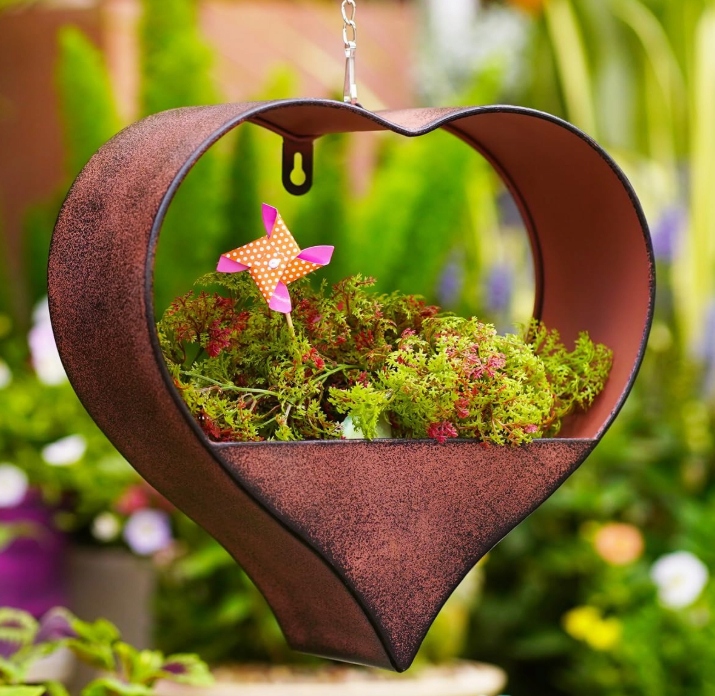 Металлический цветочный горшок в форме сердца, подвесное украшение для сада для наружного использования - декоративный цветочный горшок ржавого цвета для сада, балкона, уличных цветочных горшков, украшения гостиной, подвесной цветочный горшок, подарки для женщин и матерей.