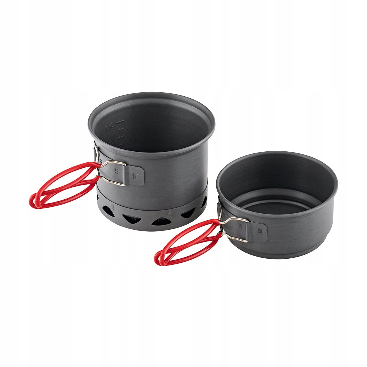В комплект входят 2 горшка. Более крупный из них оснащен инновационным радиатором, который не только сокращает время приготовления, но и снижает расход газа, что немаловажно в уличных условиях. Вы также можете использовать меньшую кастрюлю в качестве крышки. Оба имеют эргономичные ручки с силиконовым покрытием, не проводящие тепло. Это обеспечивает удобный и безопасный захват, даже когда фляги очень горячие.
