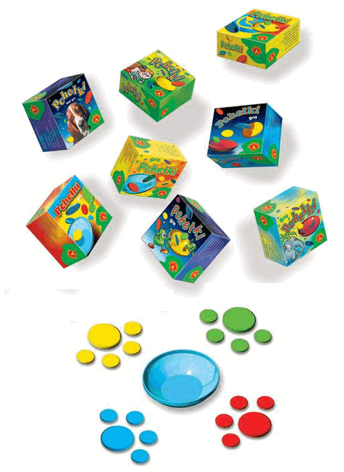 Содержимое коробки: 16 маленьких блох, 4 больших блохи, миска.