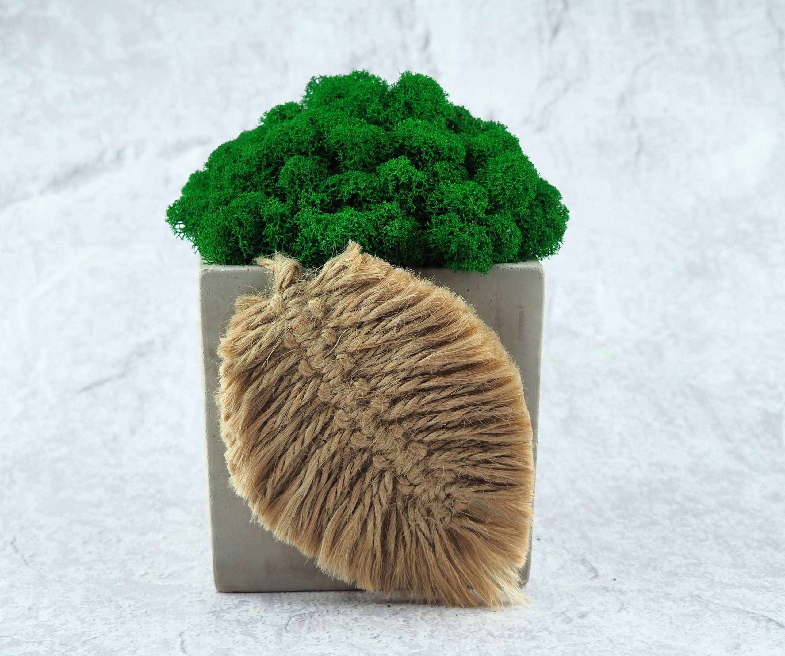 Цветочный горшок высочайшего качества из отборных пучков мха хроботек. Цвет мха насыщенно-зеленый. Мох обязан своим цветом природному красителю. Уверяем вас, что мох не поменяет свой цвет даже по прошествии длительного периода времени. Практически не требует ухода. Его можно использовать в ванной комнате, где повышенная влажность. Он также не боится ультрафиолетовых лучей, но после длительного воздействия тепла его необходимо аккуратно опрыскать водяным туманом. Родом из скандинавских лесов.