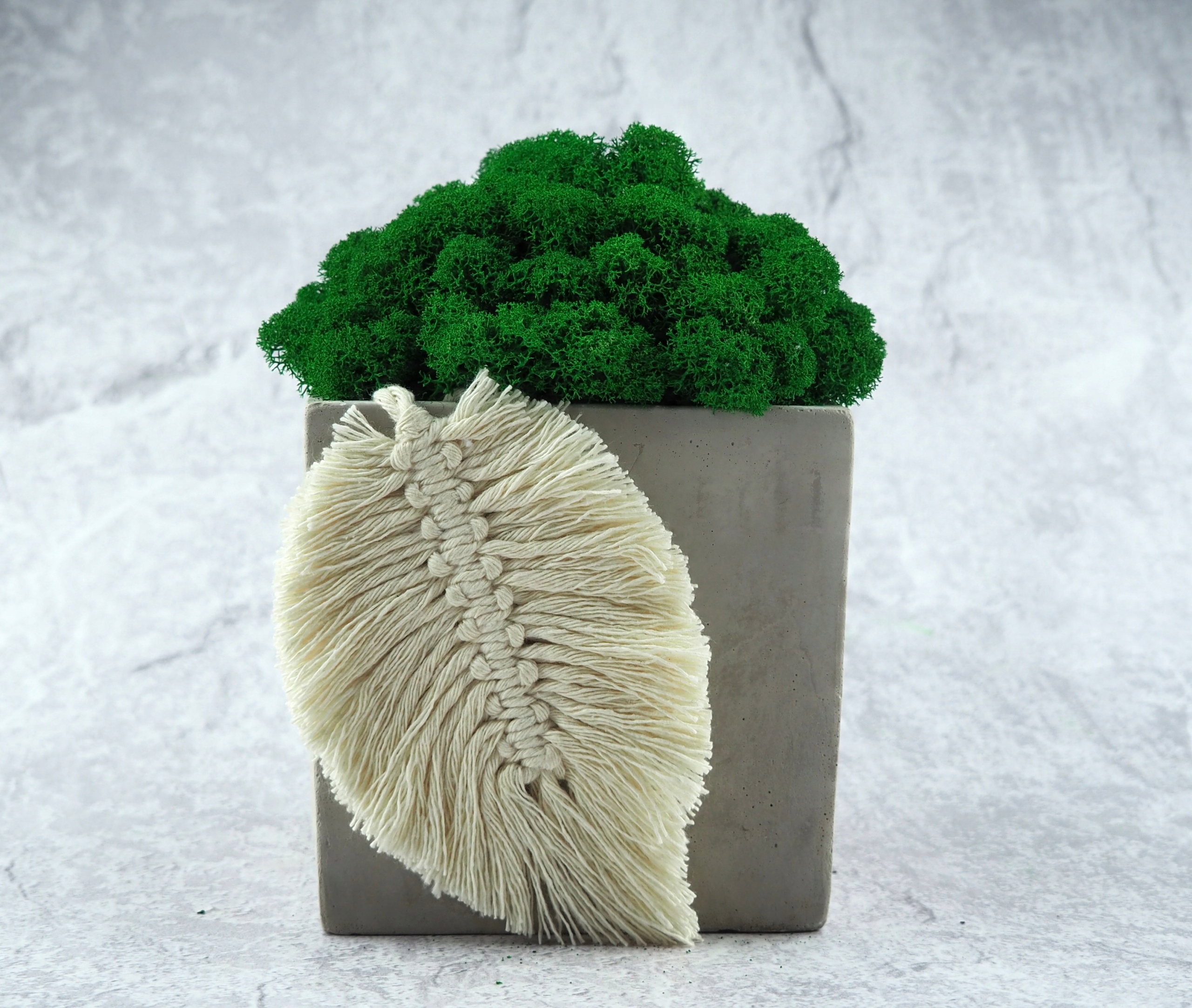 Квадратный вазон из архитектурного бетона с мхом хроботек.