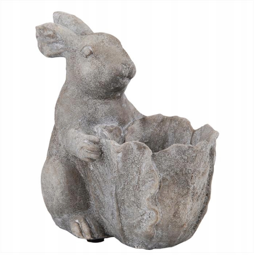 Цветочный горшок с фигуркой зайчика из серой с оттенком бежевой керамики. Этот чехол необычно украсит ваш дом, сад или балкон.