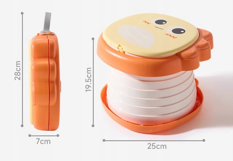 Практичный складной туристический горшок с милым детским дизайном! Идеальное решение для родителей, которые ценят комфорт и гигиену во время путешествия. Компактный, легкий и простой в использовании — помещается в сумку, рюкзак или багажник.