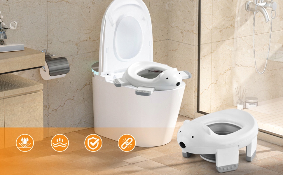 ✔️Выполненный в очаровательной форме белого медведя, он привлечет внимание детей и поможет им научиться пользоваться туалет.