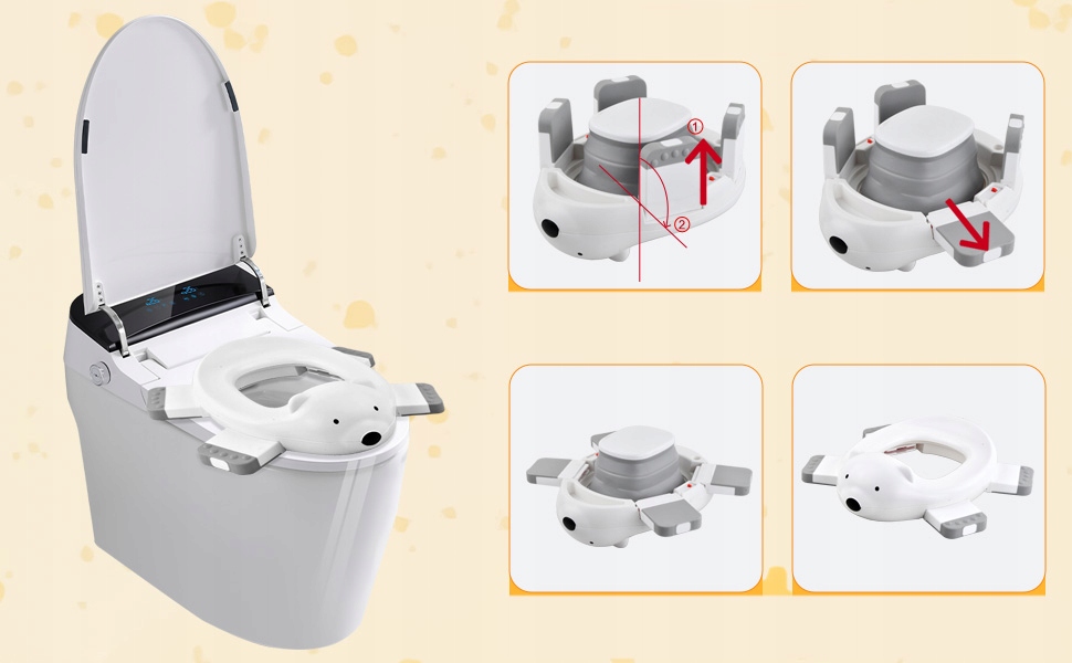 ✔️Оформлен в симпатичном дизайне в форме белого медведя, он привлечет внимание детей и поможет им научиться пользоваться туалетом.