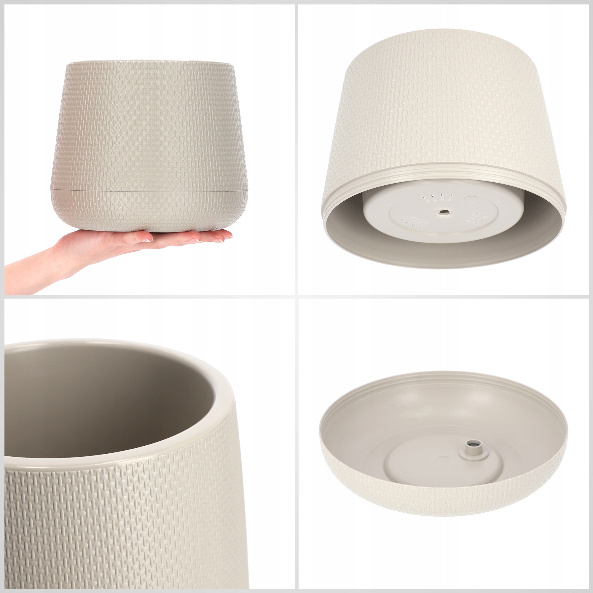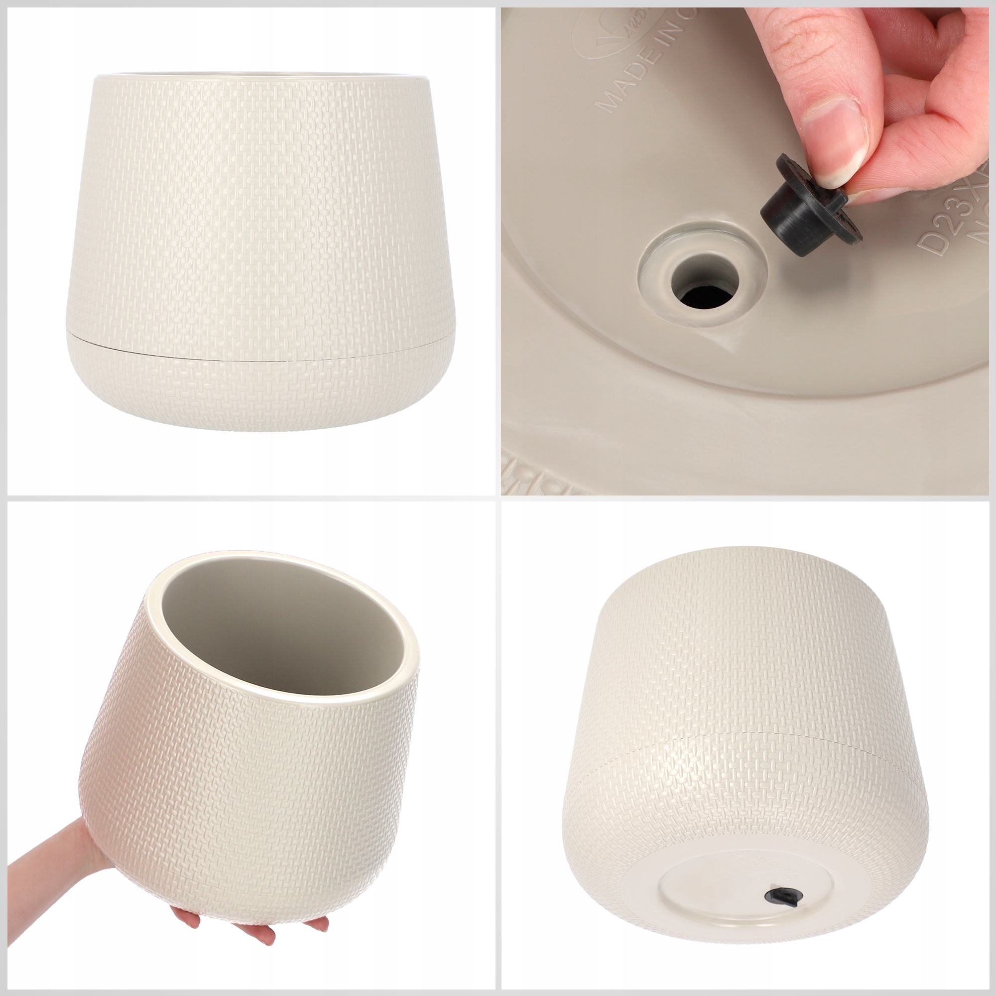 ЦВЕТОЧНЫЙ ГОРШОК 17см ПОДСТАВКА С КРЫШКОЙ ПРОБКОВЫЙ РАСТЕНИЯ БЕЖЕВЫЙ