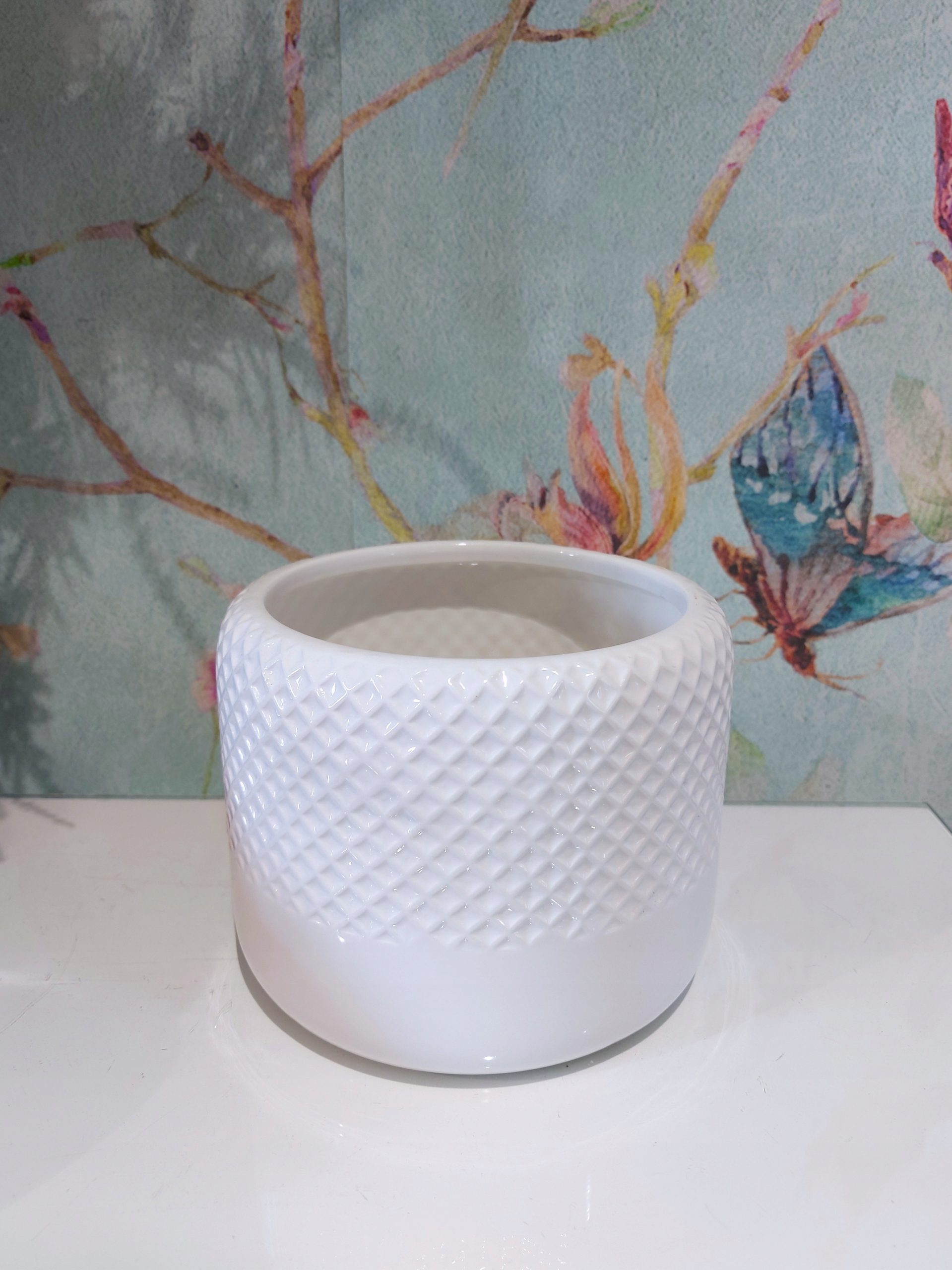 КЕРАМИЧЕСКИЙ ЦВЕТОЧНЫЙ ГОРШОК, БЕЛЫЙ