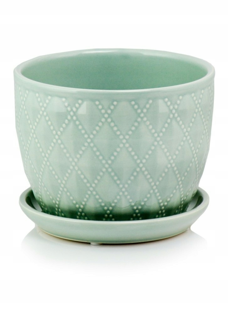 ЦВЕТОЧНЫЙ ГОРШОК КЕРАМИЧЕСКИЙ НА ПОДСТАВКЕ 17см МЯТА
