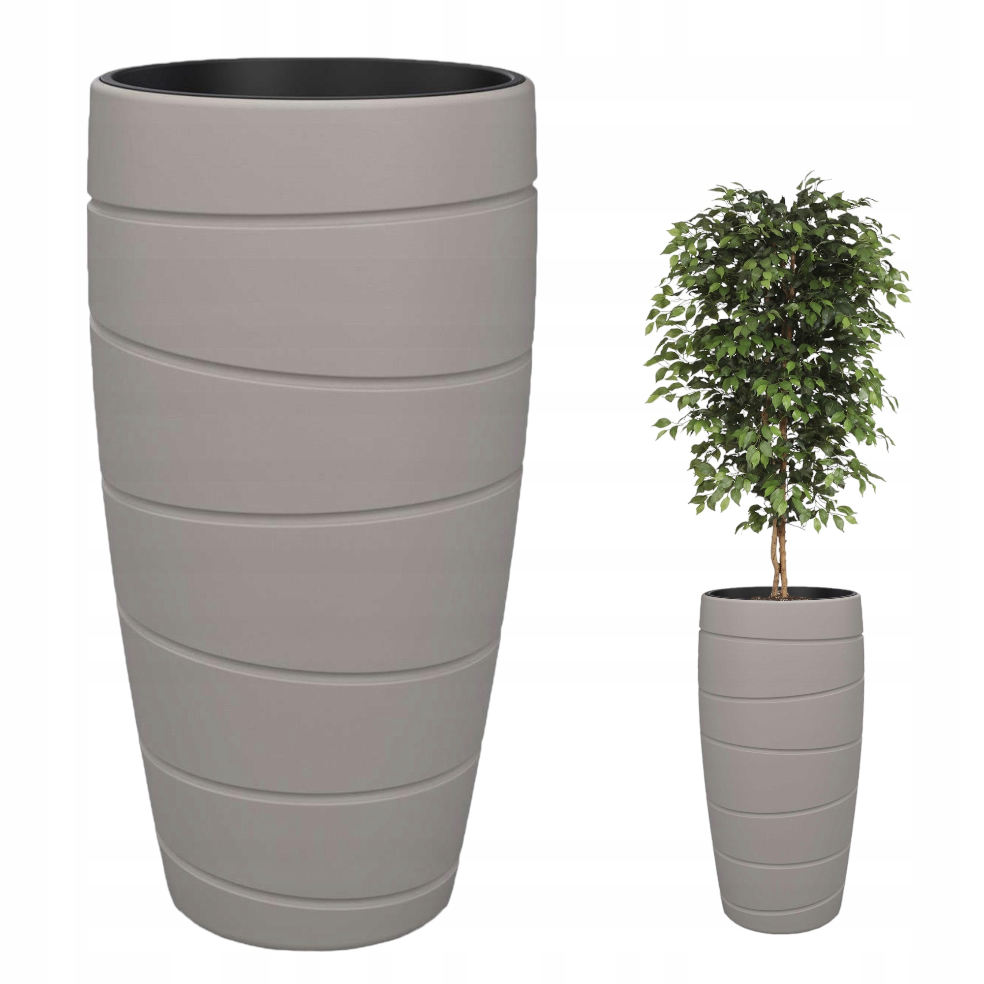 ЦВЕТОЧНЫЙ ГОРШОК С БОЛЬШОЙ КРЫШКОЙ-ВСТАВКОЙ 40x77 СМ КРЕМОВЫЙ ПЛАСТИКОВЫЙ САДОВЫЙ ГОРШОК