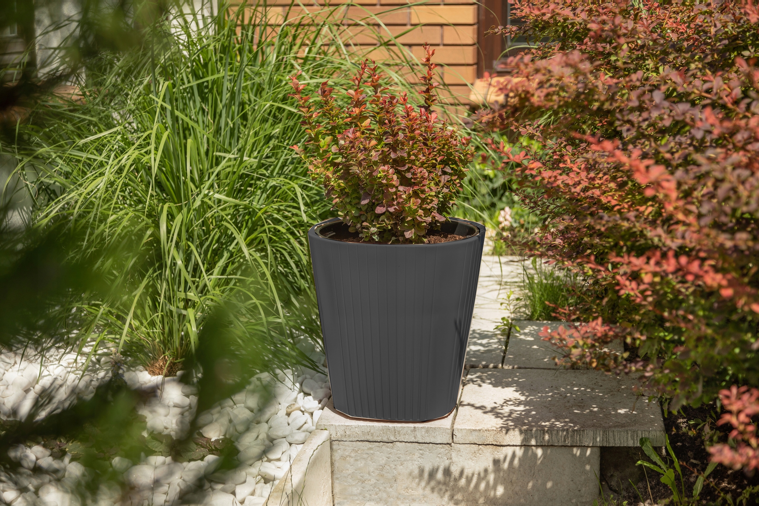 Горшок с вставленным корпусным горшком большой 39x40 см. Пластиковый сад антрацит