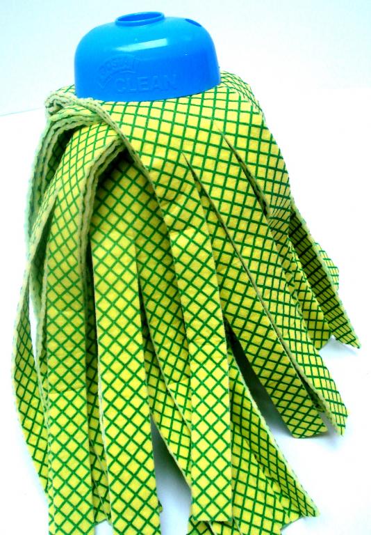 Усиленная ткань с желто-зелеными полосками продлевает срок использования швабры.