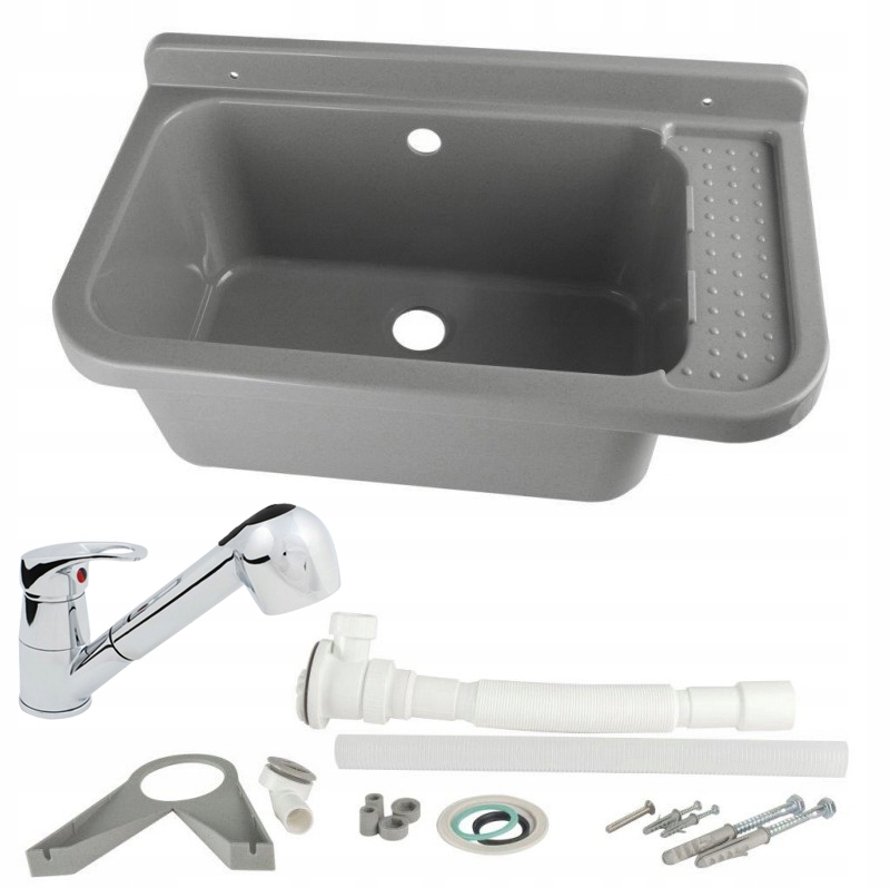 ХОЗЯЙСТВЕННАЯ КАМЕРА ПРАЧЕЧНОЙ РАКОВИНА СЕРЫЙ + КРАН