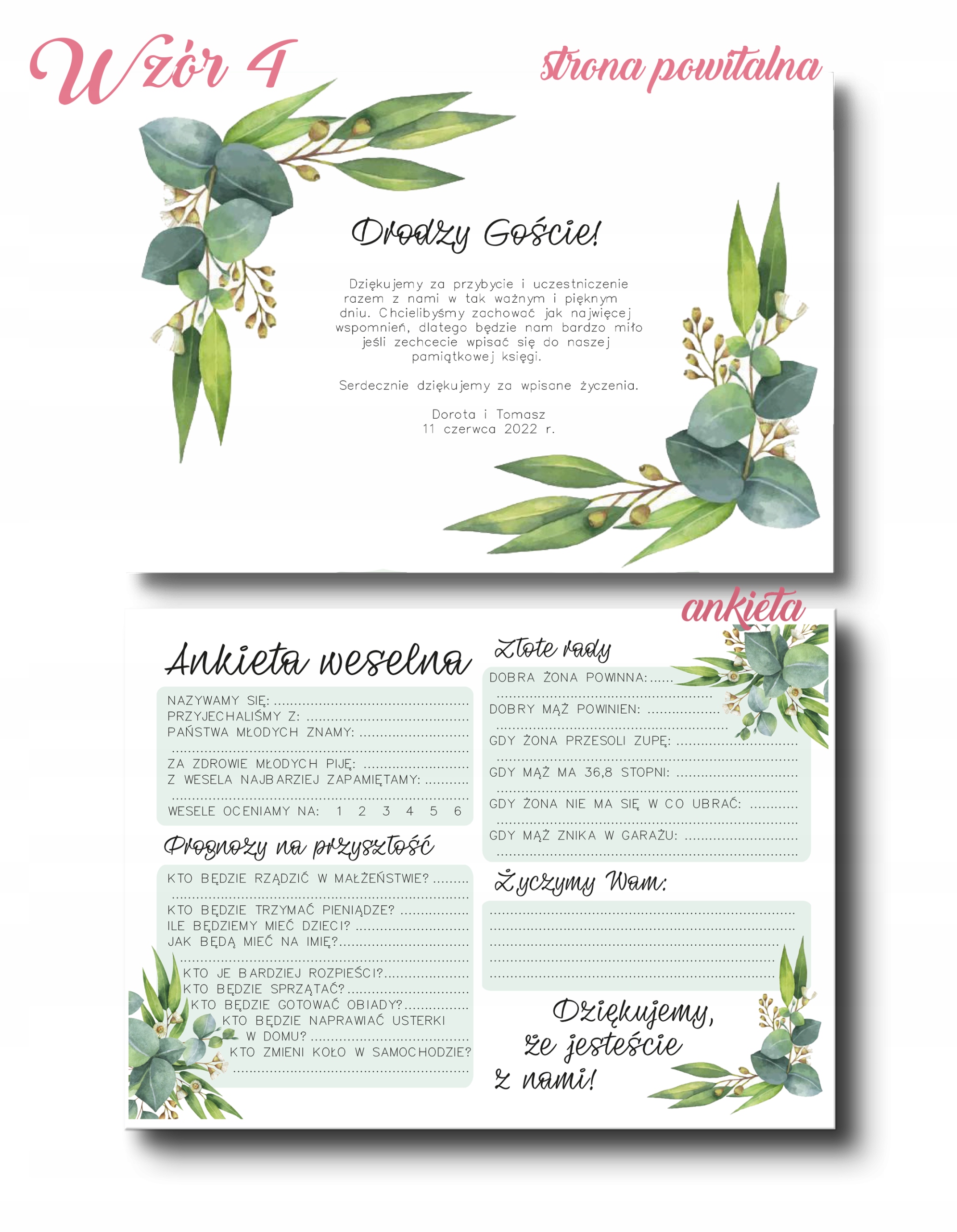 - Внутри 30 листов с анкетами, напечатанными с обеих сторон ( 60 опросов), что позволит гостям оставить свои пожелания и воспоминания.