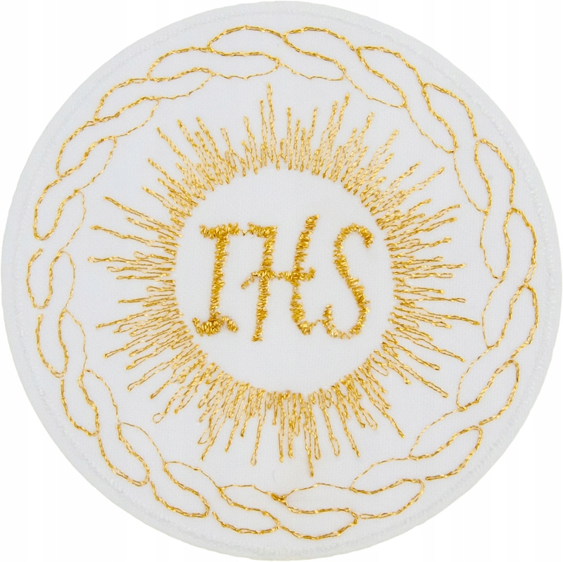 Декоративная аппликация в виде Хозяина, предназначенная для шитья. Идеально подходит для крещения, первого причастия. Идеален в качестве церковного украшения. Очень тщательно сделано. Изготовлен из материала, подходящего для стирки при температуре 40 градусов. На изнанке минимальное количество ниток для вышивания. Очень тонкий.