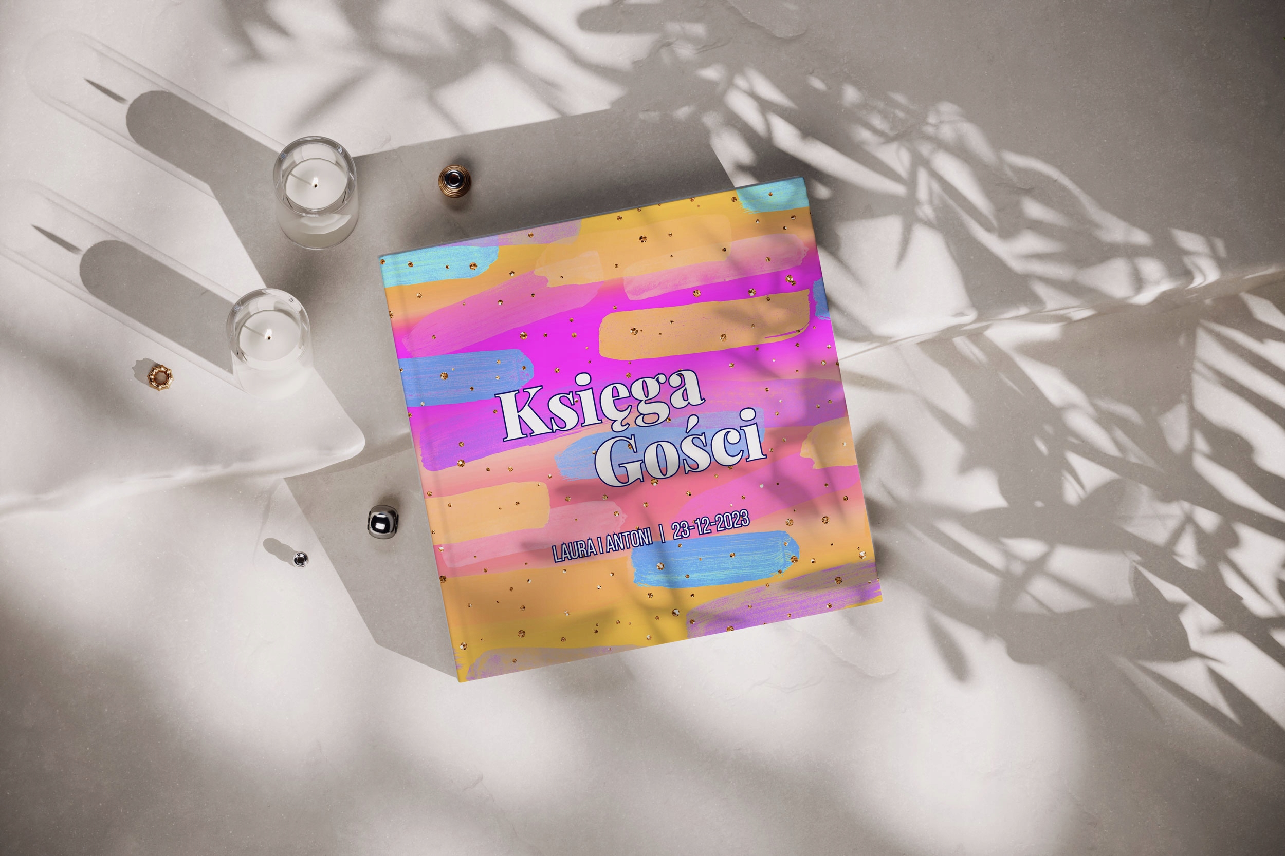 В нашей персонализированной гостевой книге мы также предлагаем возможность выбрать цвет карточек внутри. Благодаря этому вы сможете подобрать внешний вид страниц под стиль и тематику вашего торжества. Вы можете выбирать из множества цветов, таких как мягкие пастельные, приглушенные нейтральные или более смелые и смелые цвета, чтобы создать желаемый визуальный эффект.