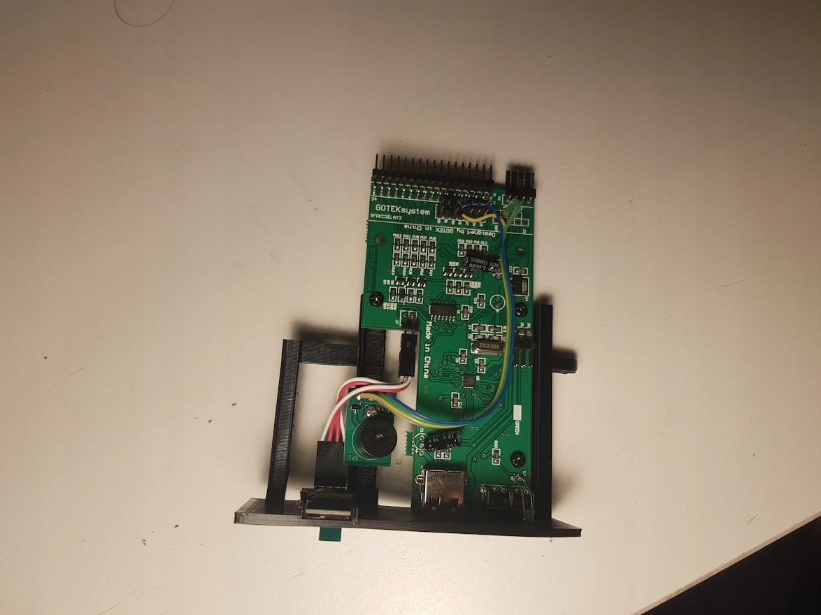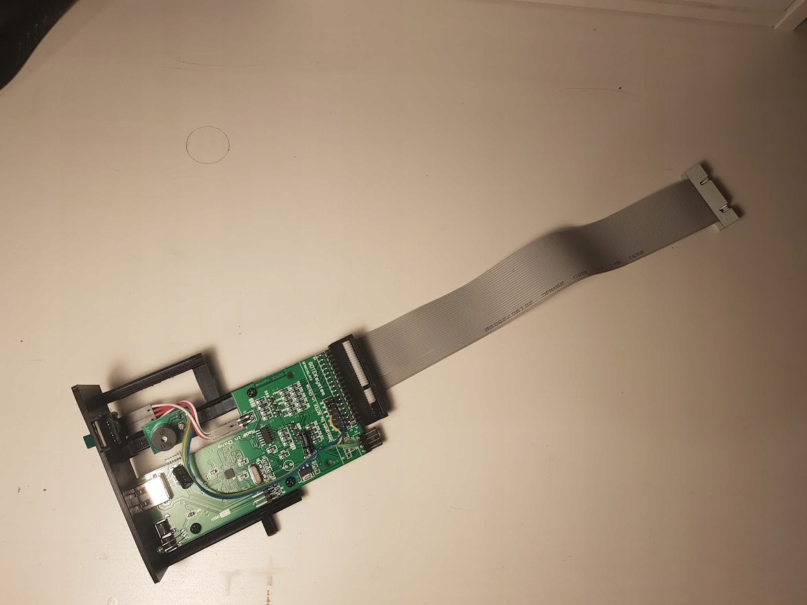 Эмулятор дисковода Gotek с загруженным программным обеспечением FashFloppy. С установленным OLED-дисплеем и активным динамиком, имитирующим работу станции во время чтения. Все это помещено в печатную рамку, подходящую для Amstrada PCW 8256/8512.