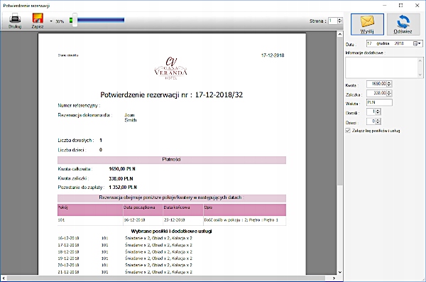 - Оказывает профессиональное обслуживание клиентов объекта благодаря системе форм и текстовых сообщений – подтверждений бронирования, благодарственных писем, регистрационных карточек, и т. д.