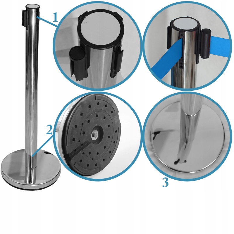 Надежное исполнение стойки и основание из прочной и эстетичной стали придают ей чрезвычайно впечатляющий вид. Основание весом около 5 кг обеспечивает высокую устойчивость, что защищает от случайного опрокидывания отдельной стойки или всей линии.