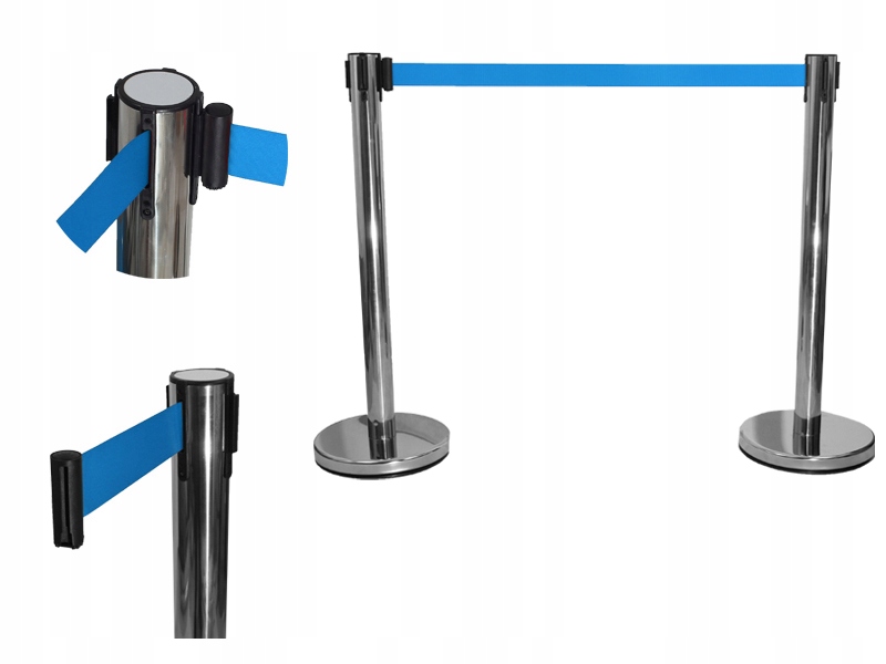 Выдвижная синяя лента гарантирует высокую видимость и, следовательно, следовательно, простым и интуитивно понятным способом он позволяет движущимся людям определить маршрут назначенного маршрута связи или какой проход или объект заблокирован.
