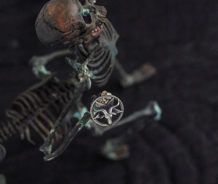 Серьги с пентаграммой и козлиной головой в стиле гот, викка, панк