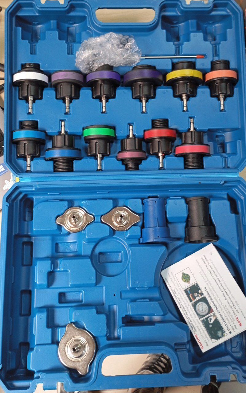 Адаптеры скогиноза - вакуум для завершения утечек жидкости и испытаний с радиатором содержит в общей сложности 21 красочный адаптеры радиаторов, в том числе 17 специальных адаптеров радиатора, 1 универсальный адаптер конуса и 3 адаптеры из алюминиевого пробки, чтобы проверить плотность радиатора и дополнения жидкости охлаждения. Они подходят практически для всех видов отверстий в радиаторах в классических и современных транспортных средствах.