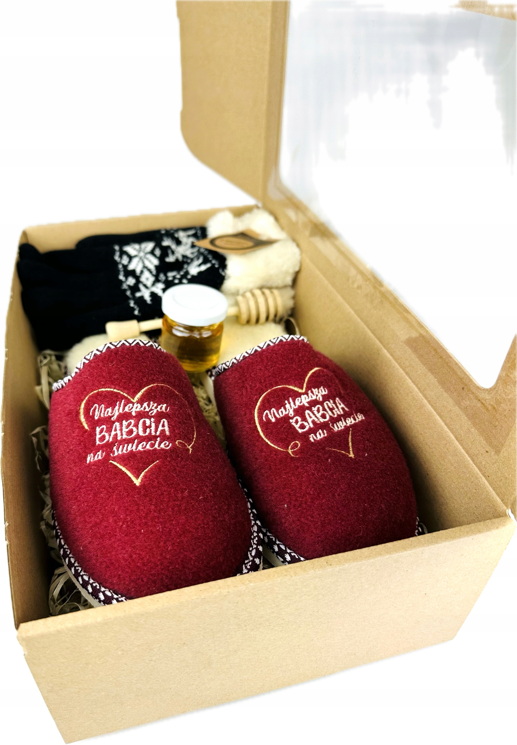 Готова подарункова коробка для бабусі 2в1 ТАПОЧКИ Рукавички ДЛЯ БАБУСІ ЗАБЕЗПЕЧИТИ ДЛЯ БАБУСІ