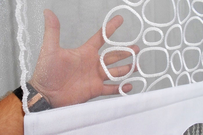 - Не требует подшивки, достаточно пришить ленту сверху и закончить снизу тоннелем для утяжелителей.
