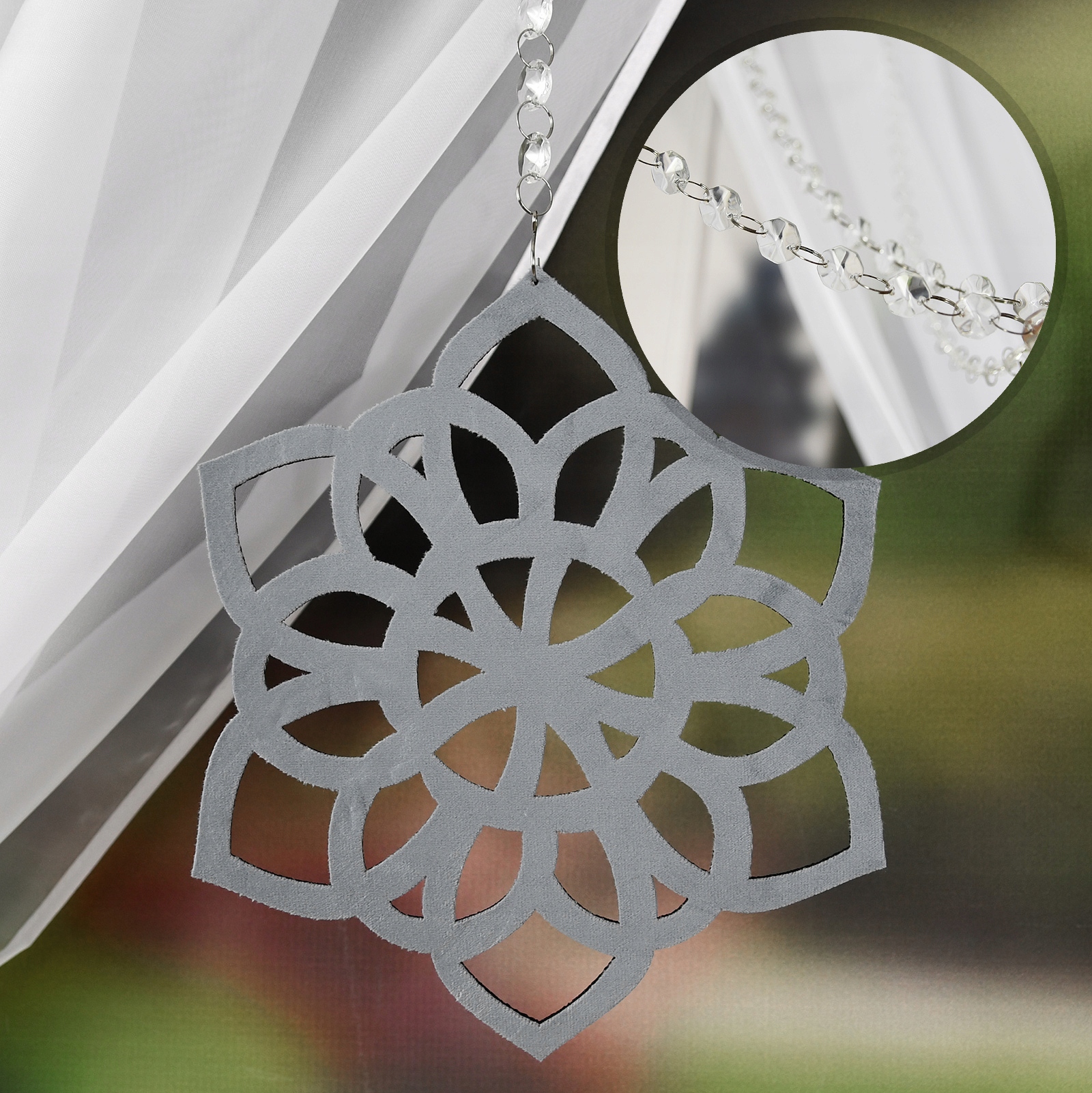 ✳️Элегантный комплект состоит из: Штора и две декоративные гардины.Штора изготовлена из качественной белой вуали, пришита на одну ленту, низ шторы отделан кантом.Штору можно закрепить с помощью вуалевых лент, которые входят в комплект.Шторы из бархатного материала. Шторы имеют изящные ленты со стразами для крепления.Комплект украшен ажурными подвесками, на которые можно подвешивать бусины.