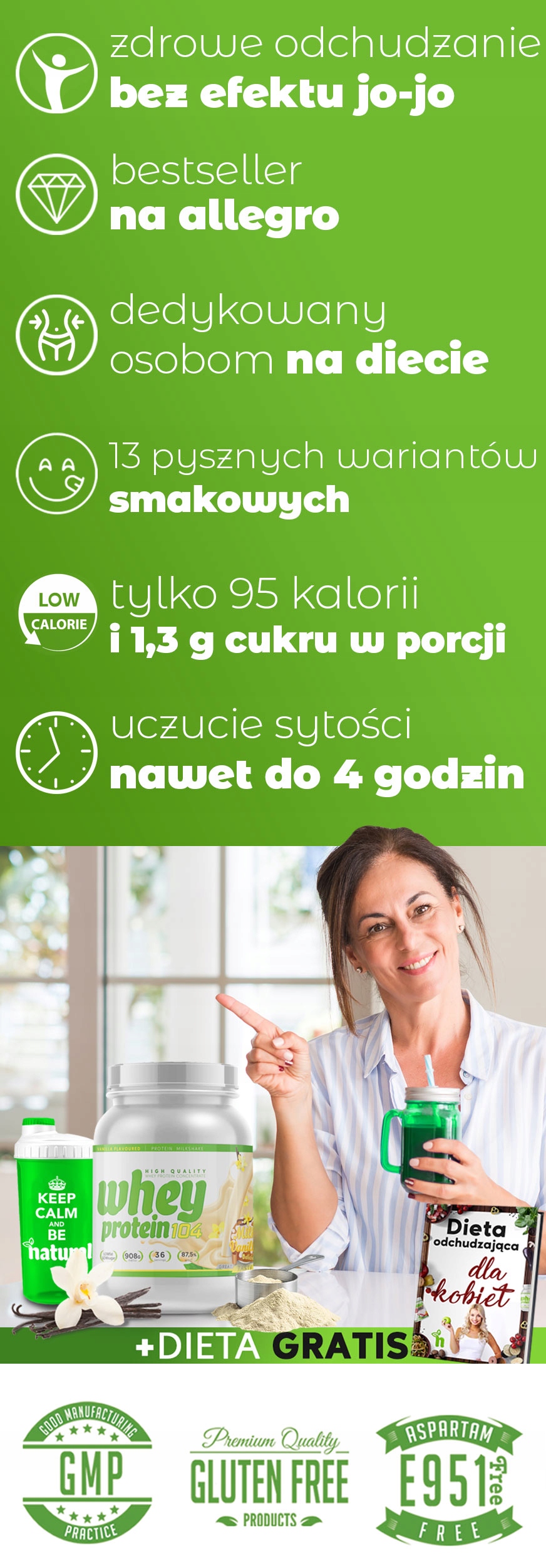 Наши коктейли – это не только эффективность и вкусные на вкус, но и правильный подход к здоровью. Слишком жесткая диета и резкое сокращение калорий не только окажут эффект, противоположный запланированному, но и могут оказать негативное влияние на ваше здоровье. Принимая Whey Protein 104 вместе с прилагаемой к нему бесплатной диетой, мы можем быть уверены, что худеем относительно безопасно. Килограмма мы теряем постепенно, по три-четыре (иногда чуть больше) в месяц, и это оптимальная скорость похудения для нашего организма. Только тогда наш организм не будет голодать и не потеряет ценные питательные вещества, микро- и макроэлементы, необходимые для правильного функционирования. А после завершения лечения у нас гораздо больше шансов избежать эффекта йо-йо.