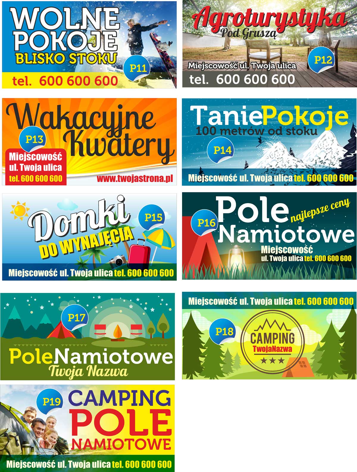 Рекламный баннер свободных помещений, коттеджей, кемпингов, аренды жилья и т.п. 2м х 1м, готовые макеты.