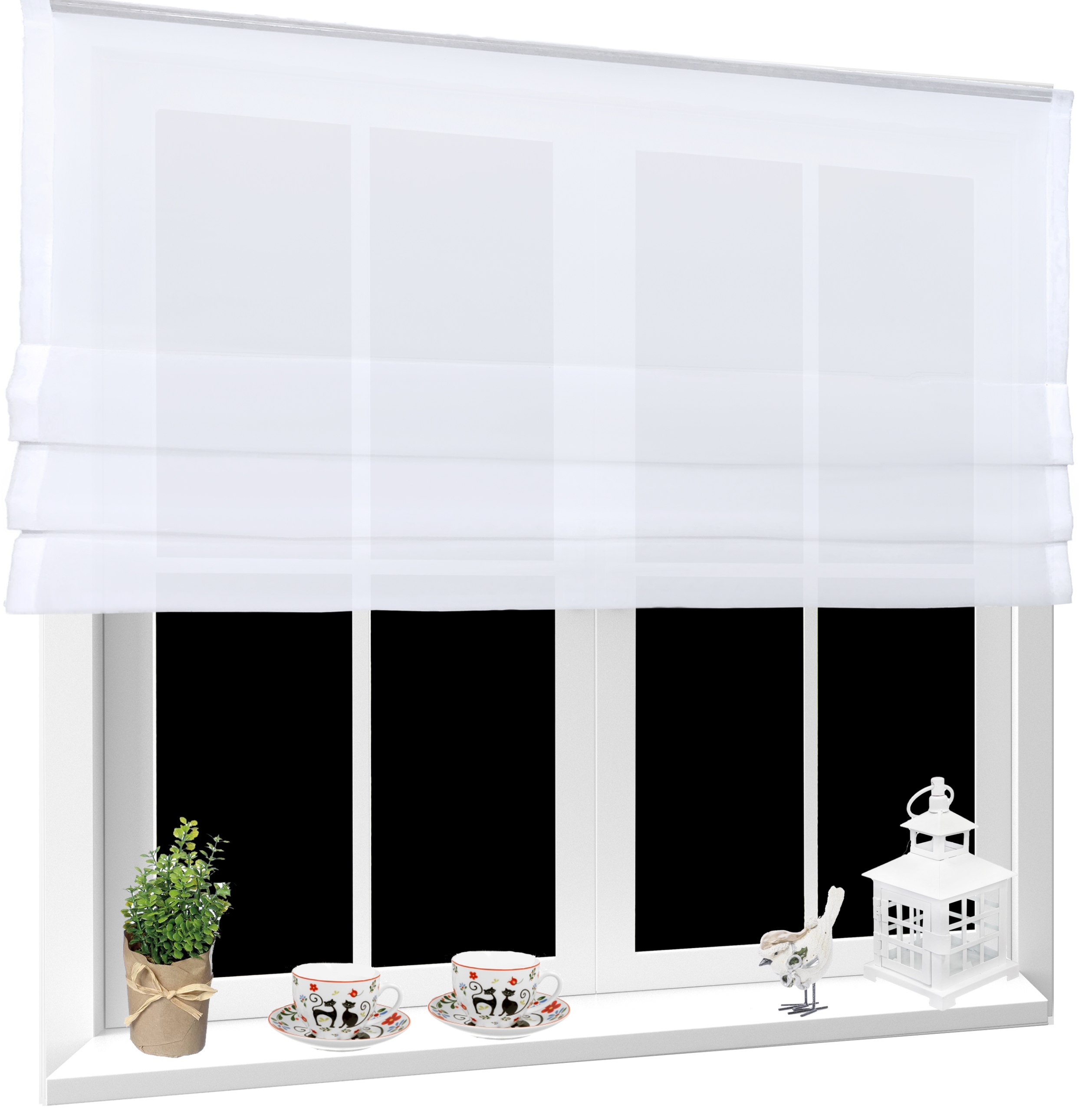 Ролеты из белоснежной ткани. Сверху пришивается тесьма длиной 5 см. Можно прикрепить зажимами или надеть на туннель.