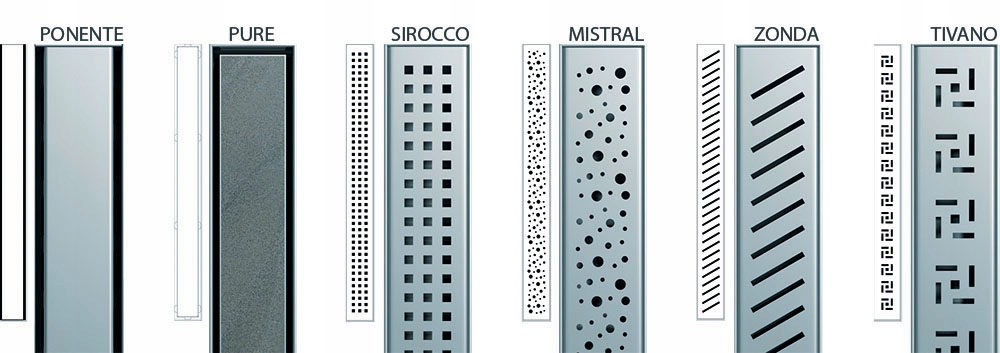 Слив всегда короче ширины поддона на 30 см. Маскирующая решетка доступна в нескольких вариантах исполнения.