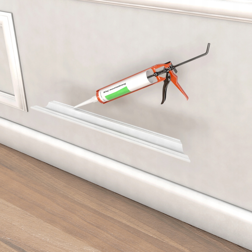 Профили крепятся с помощью всех видов монтажного клея непосредственно к стене. Если между стеной и полосой есть зазоры, их можно заполнить акрилом и покрасить (латексной или акриловой краской).