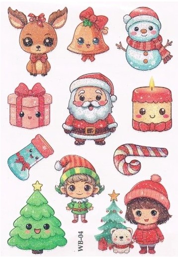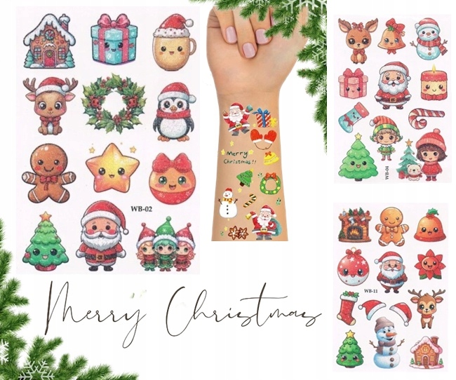 Вот набор красочных и привлекательных рождественских татуировок для детей! В набор входит 12 татуировок, каждая из которых отличается. Более того, татуировки можно мыть, поэтому дети могут наслаждаться ими, не беспокоясь о необратимом изменении цвета кожи.
