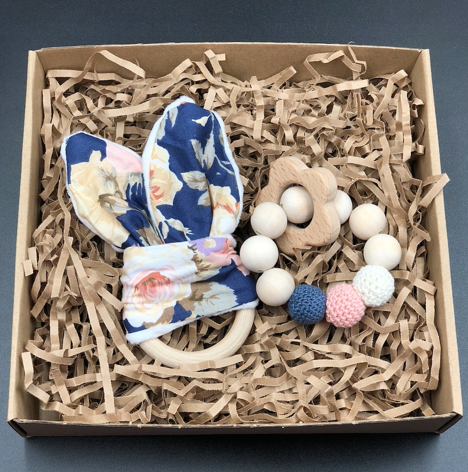Готовая композиция содержит целых 5 различных элегантных аксессуаров, необходимых при уходе за малышом.