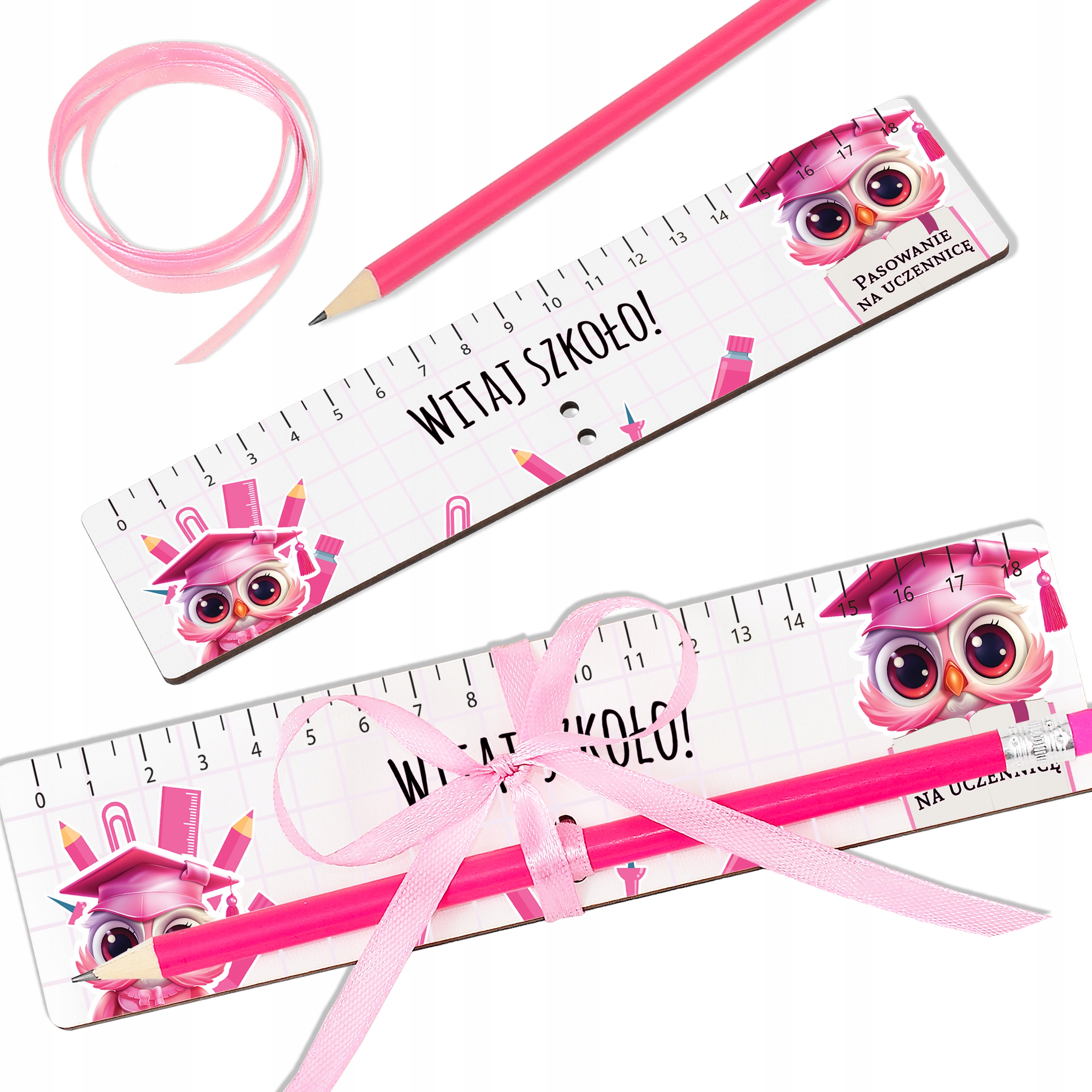 ✅ Набор: линейка, розовая лента и розовый карандаш.