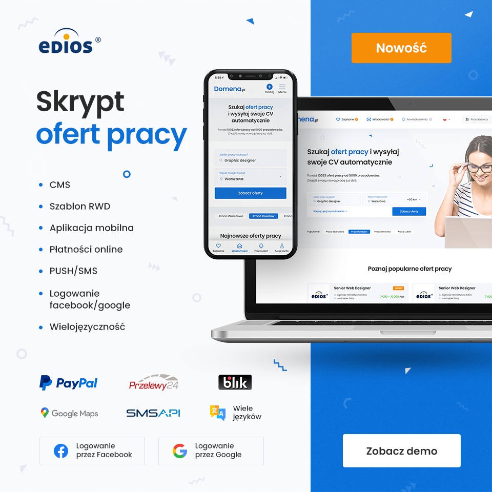 Теперь вы можете использовать наш скрипт и открыть свой собственный рекламный портал за рубежом, по всей стране или на региональном уровне. включая сотни категорий должностей и специализаций. Понимаете ли вы, что в настоящее время Интернет — лучшее место, где можно заработать много денег с небольшими финансовыми затратами? Популярные интернет-порталы берут 150 злотых только за добавление предложения о работе, а в Польше сотни компаний ищут новых сотрудников.