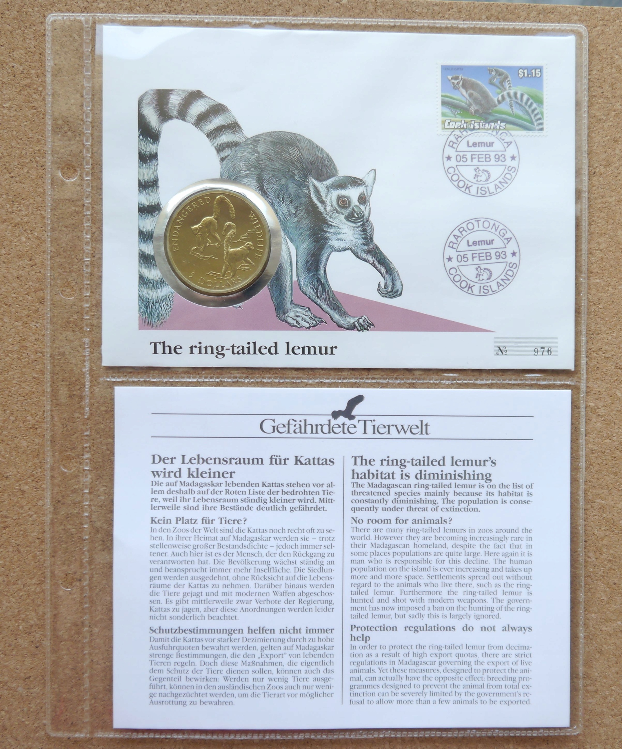 Повар $ 5 1992 Lemur Numismatic Letter + Stamps